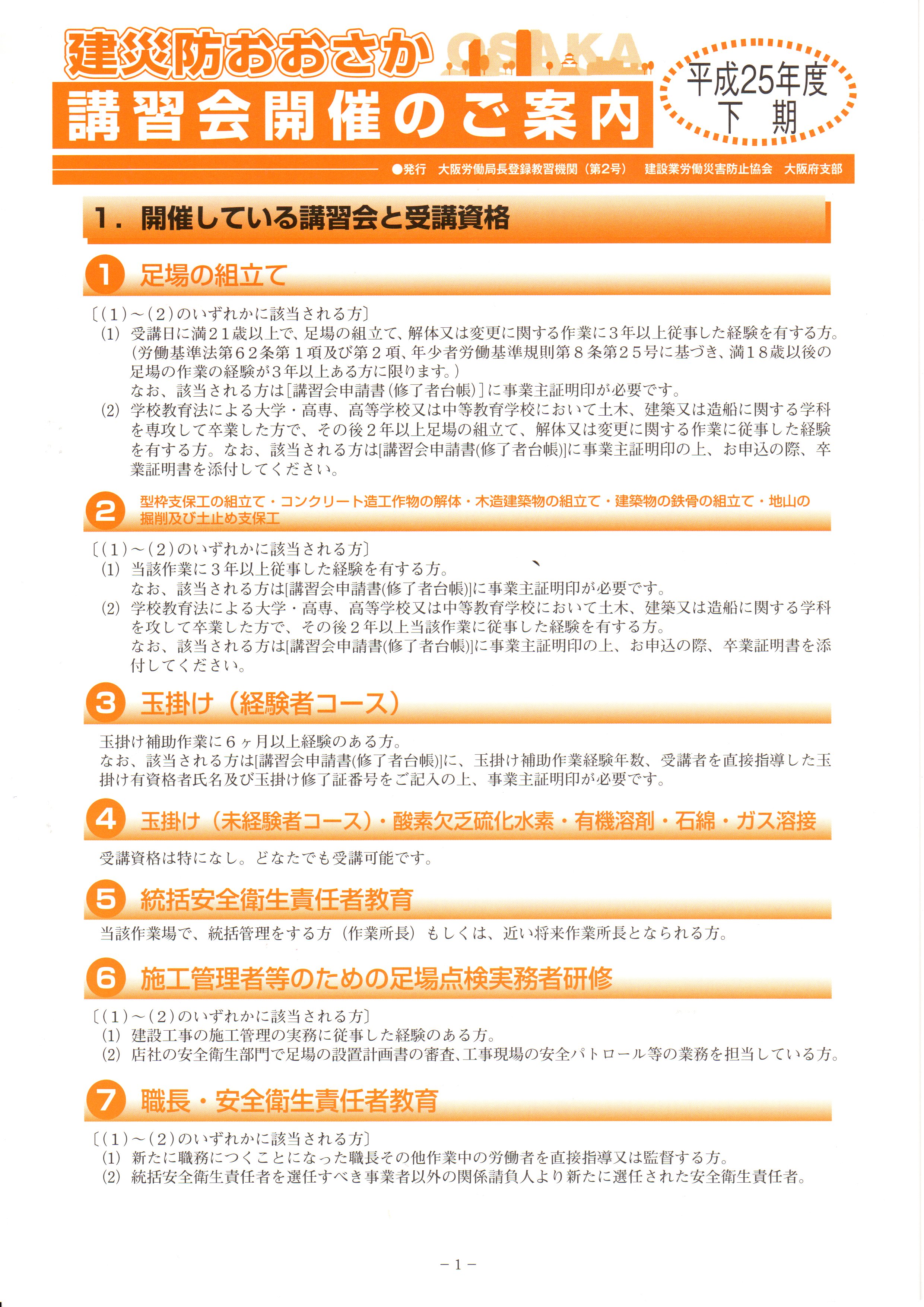 「平成25年度下期講習会」のご案内 「平成25年度下期講習会」のご案内 首題について建災防からのご案内がございます。 下記の添付資料をクリックして頂ければ閲覧できます。 ご確認、宜しくお願い申し上げます。 1.jpgをダウンロード 2.jpgをダウンロード 3.jpgをダウンロード 4.jpgをダウンロード 以上 « 前の記事 次の記事 »